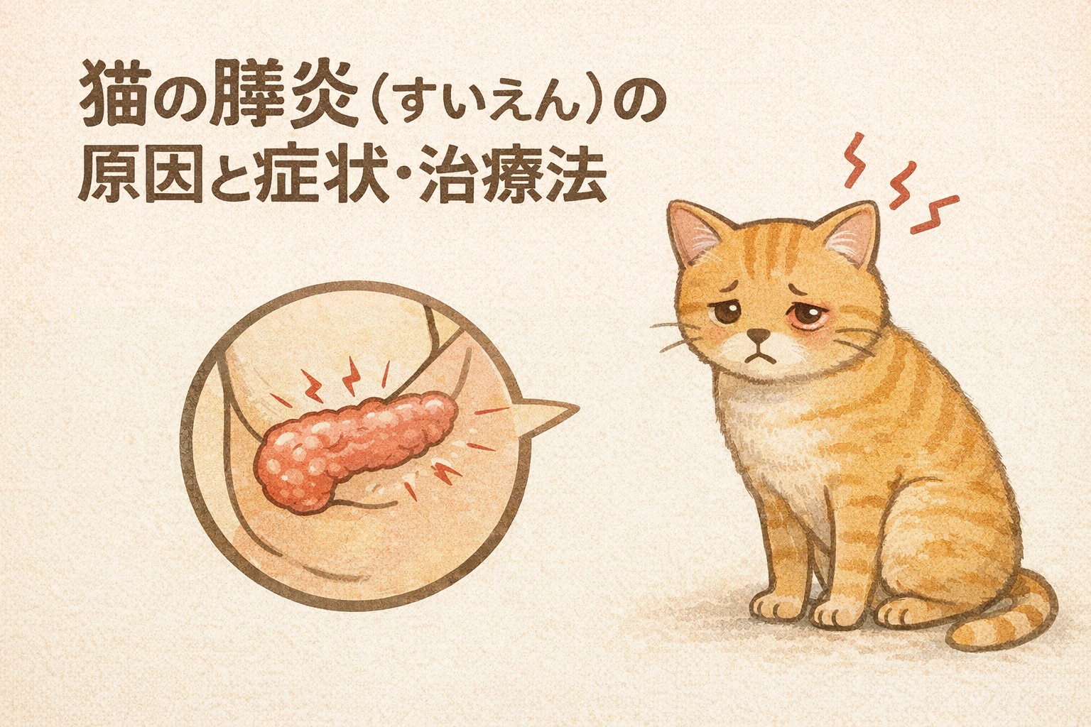 猫の膵炎は、食欲低下・嘔吐・元気消失などの分かりにくい症状から始まることが多く、早期発見が回復の鍵となります。