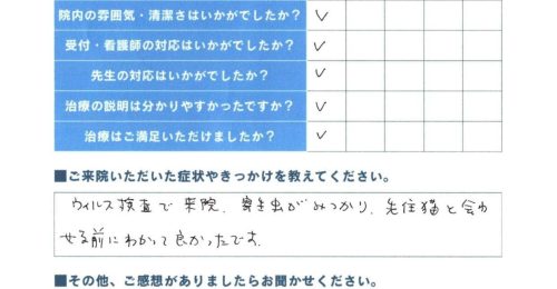 温かいお言葉をありがとうございます。一つひとつのお声を大切にし、これからも飼い主様と動物たちに寄り添った診療を行ってまいります。