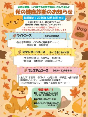 秋の健康診断キャンペーンを実施しています🐶🐱